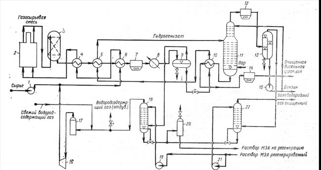 Суть данного подхода основана на взаимодействии водорода с дизельным топливом в присутствии определенных веществ-катализаторов. В результате химических реакций между водородом и соединениями серы, азота и кислорода мы получаем соответственно сероводород, аммиак и воду.