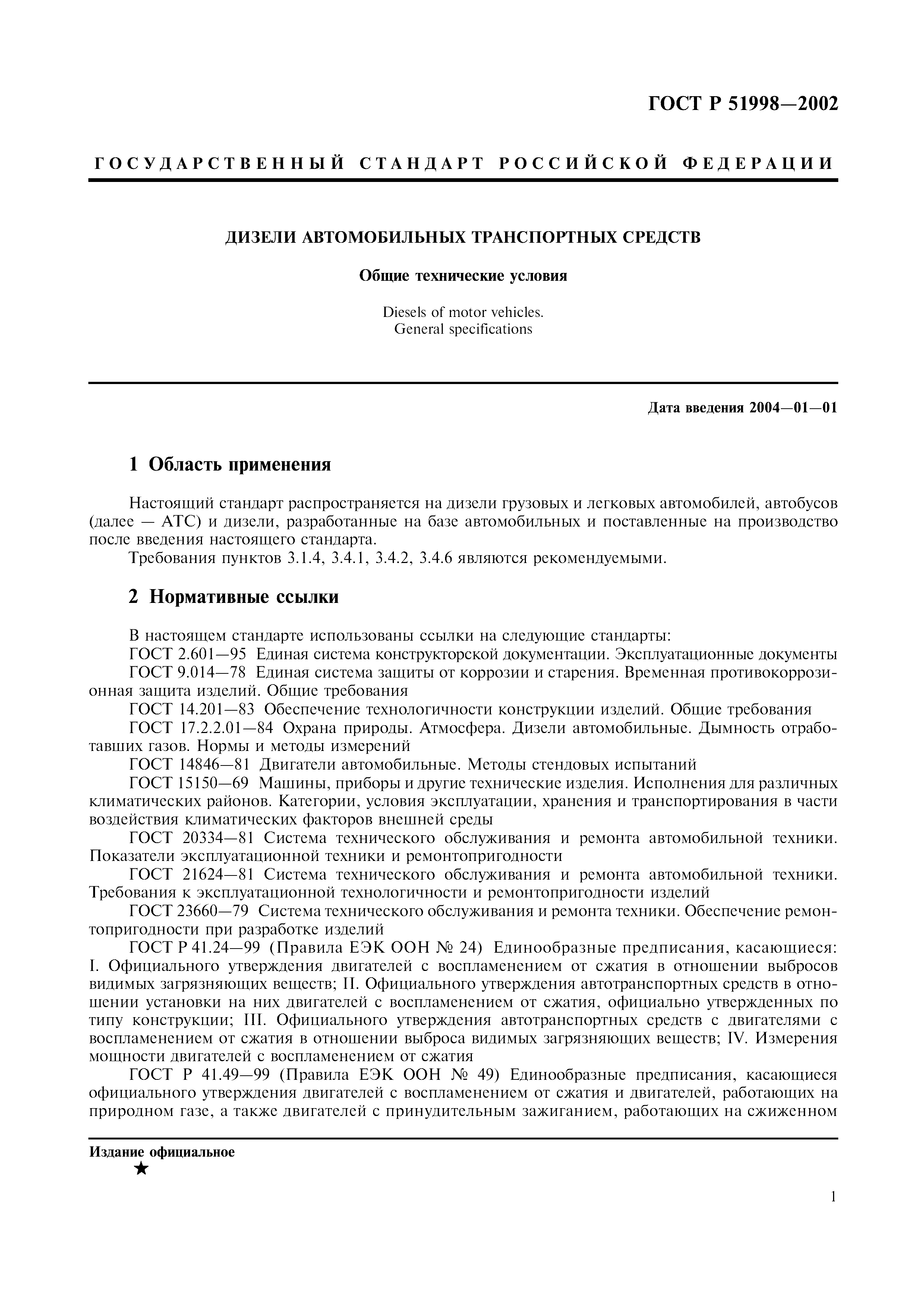 .ГОСТ Р 51998-2002 – Дизели автомобильные. Общие технические условия
