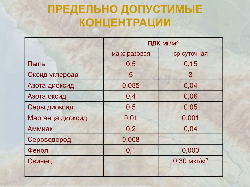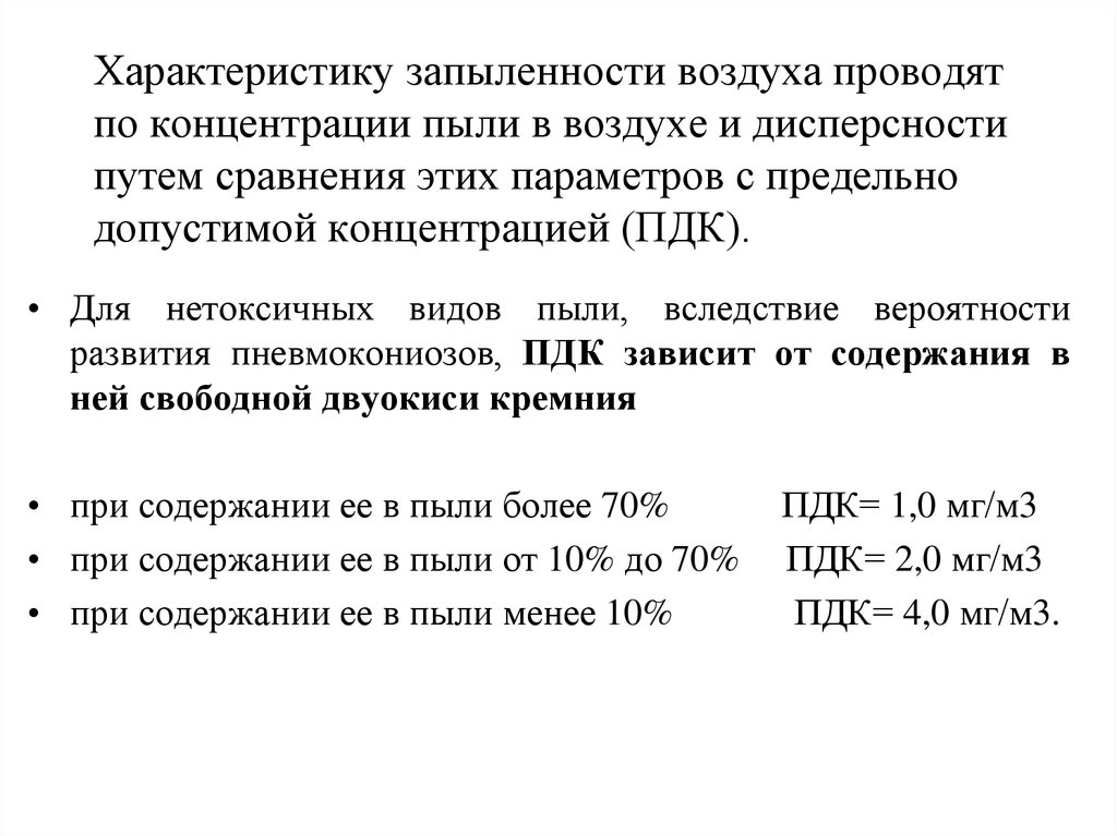 Допустимые концентрации пыли