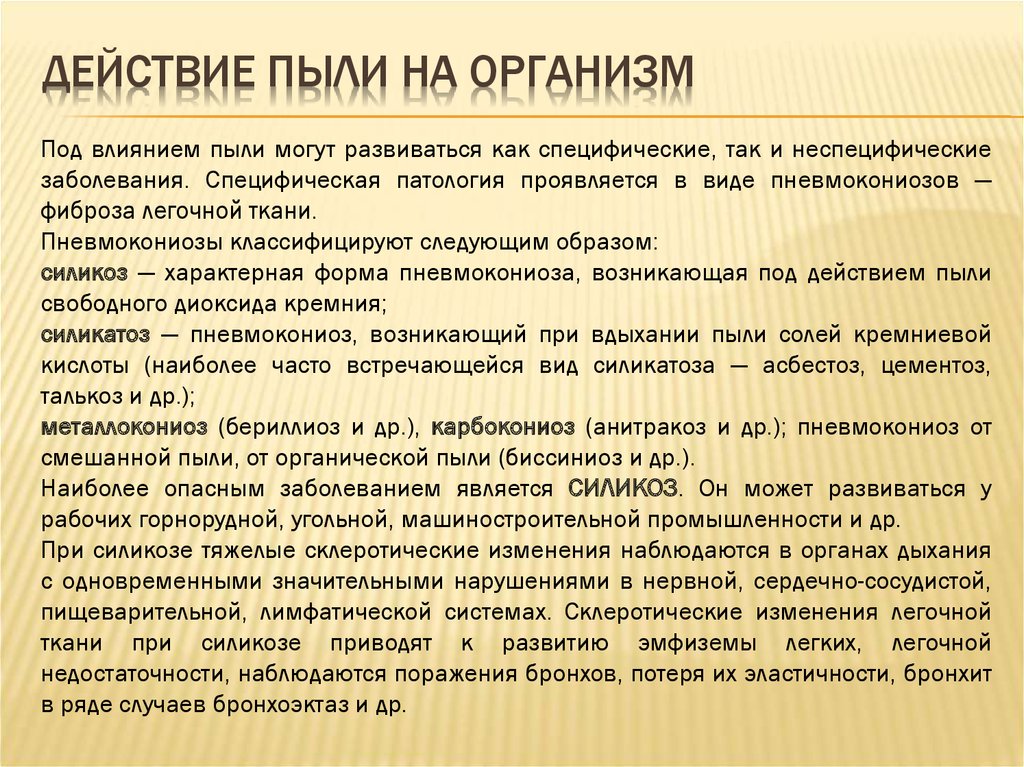 Последствия действия пыли на организм