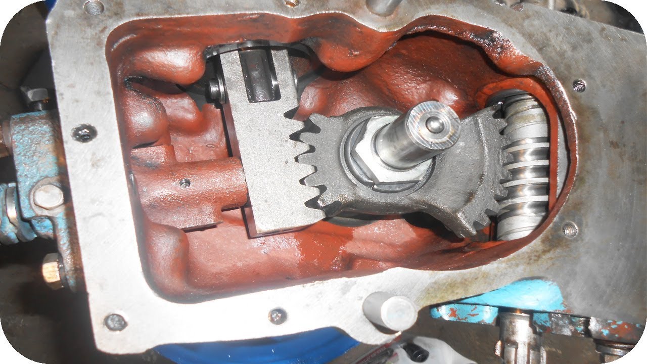 - Ослабить основной болт, размещенный в месте зацепления «червяк-сектор».