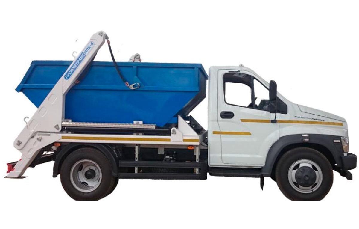 Данный тип техники комплектуется самоходным шасси, оснащённым подъёмно-транспортным оборудованием. Его назначение – подъём с поверхности земли съёмных контейнеров с их последующей перевозкой и, при необходимости, разгрузкой. Один автомобиль может последовательно обслуживать несколько контейнеров. Главное преимущество контейнерных мусоровозов – высокая степень ремонтопригодности, достигнутой за счёт простой конструкции. Подъёмно-транспортное оборудование представляет собой портальный механизм.