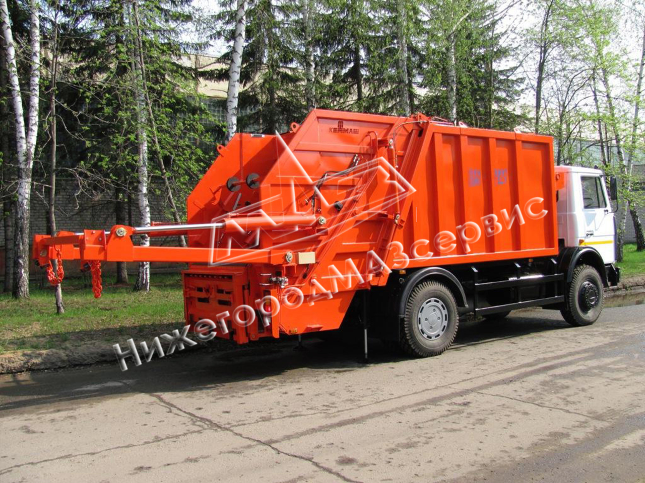 Базовое шасси – ЗИЛ-432932. Вместимость контейнера – 8 м3. Грузоподъемность портала составляет 5500 кг. Фирменная окраска надстроек в ярко-оранжевый цвет с белым логотипом завода заметна и хорошо знакома многим, безошибочно выделяя продукцию данного завода среди коммунальной техники других производителей. Прошлогодний 80-летний юбилей компании ознаменовался тотальной реконструкцией, техническим перевооружением предприятия и разработкой новых моделей коммунальной техники.
