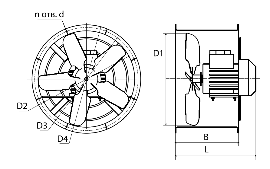 - Размер – Параметризован по диаметру окружности крышки вентилятора.
