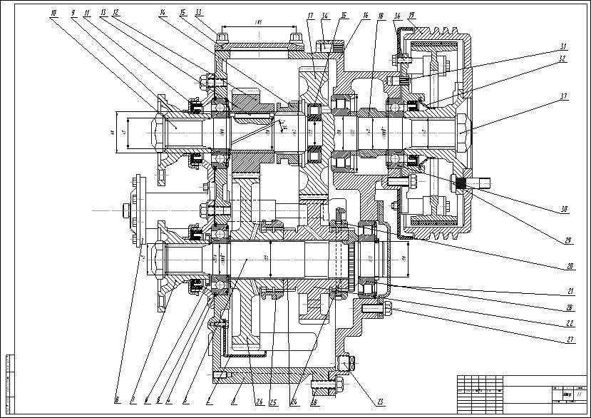 В крышке картера установлена шестерня 26 привода спидометра. Привод спидометра состоит из пятизаходного червяка с пятью зубьями и шестерни с 17 зубьями.