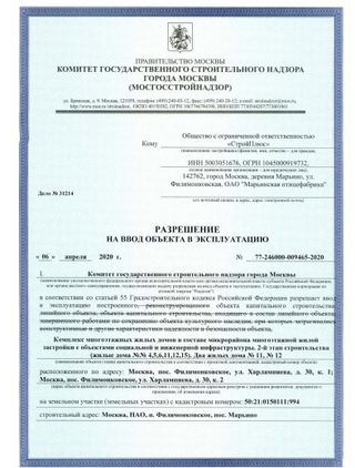 Выдача разрешения на ввод объекта в эксплуатацию. Разрешение на ввод объекта в эксплуатацию представляет собой документ, который удостоверяет выполнение строительства, реконструкции объекта капитального строительства в полном объеме в соответствии с разрешением на строительство, проектной документацией, а также соответствие построенного, реконструированного объекта капитального строительства требованиям к строительству, реконструкции объекта капитального строительства, установленным на дату выдачи представленного для получения разрешения на строительство градостроительного плана земельного участка, разрешенному использованию земельного участка или в случае строительства, реконструкции линейного объекта проекту планировки территории и проекту межевания территории, а также ограничениям, установленным в соответствии с земельным и иным законодательством Российской Федерации.