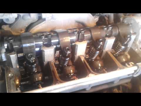 Для проведения регулировочных работ следует снять клапанную крышку двигателя. Провернуть шкив коленчатого вала до момента, когда кулачок максимально опустит плунжер насоса, а высшая точка эксцентрика распределительного вала, будет находиться под пяткой кулачка. При этом совершенно безразлично, с какой форсунки начинать регулировку, главное чтобы она находилась в сжатом состоянии. Гаечным ключом отпускается стопорная гайка, установочный винт вкручивается до отчетливого упора, а затем отворачивается на 180 градусов, что составляет половину оборота.