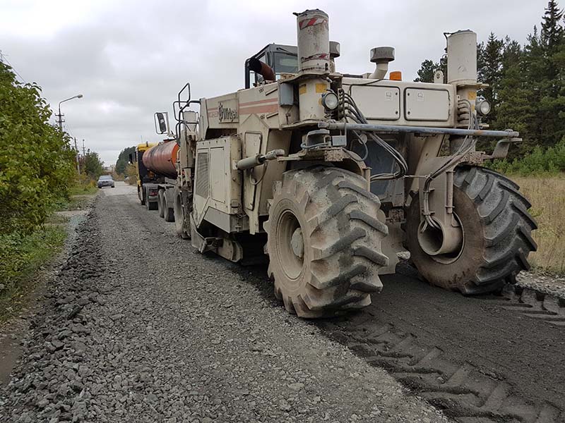 При ресайклинге старое асфальтовое полотно не утилизируют, а измельчают и перемешивают со вспомогательными веществами, такими как цемент, известь, битум.