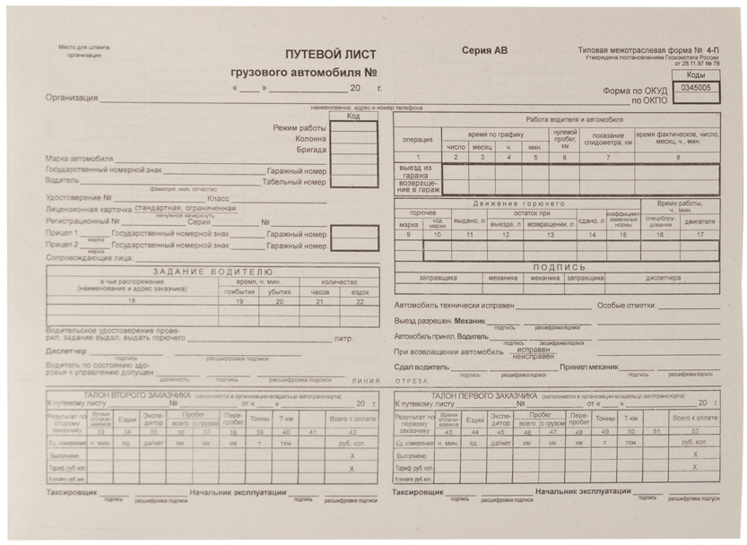Его можно можно заполнять комбинированным способом: на компьютере (данные, которые известны до начала рейса) и от руки (данные, которые стали известны во время или после поездки).