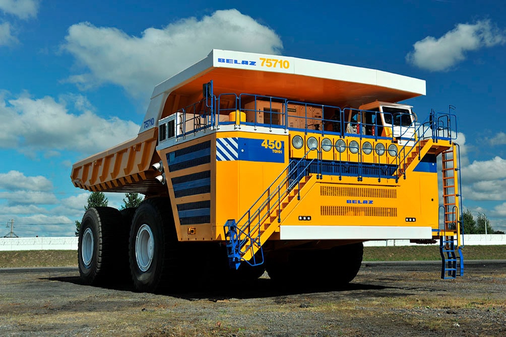 Самосвал БелАЗ-75710 — первая модель в новом классе с особо большой грузоподъемностью (450 т). Полная масса гиганта достигает 810 тонн. Длина самосвала более 20 метров, ширина около 10 метров, а высота — свыше 8 метров.