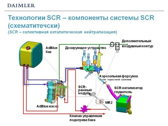 Альтернативой системы EGR является Selective Cataltic Reduction (селективная каталитическая система) – сокращенно SCR. Эта система, в отличие от первой, не влияет на работу двигателя. И тем не менее, она тоже вызывает множество затруднений у водителей и владельцев грузового автотранспорта.