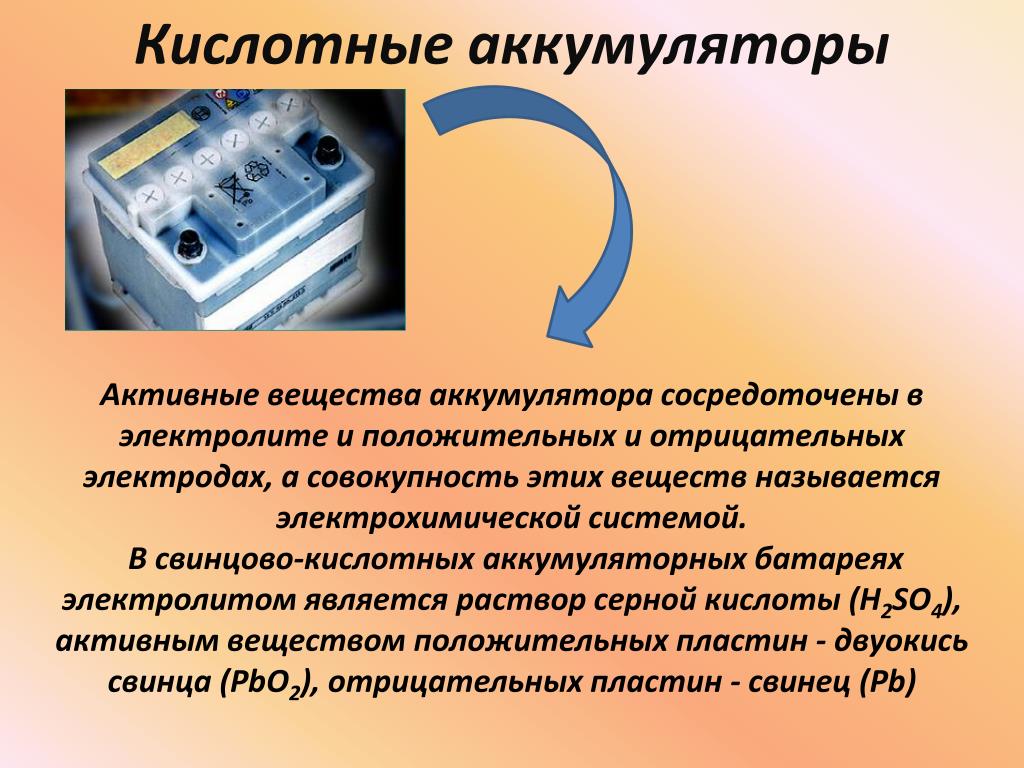 Аккумулятор — это гальваническая система, способная накапливать под действием электрического тока химическую энергию и отдавать ее во внешнюю цепь в виде электрической энергии.