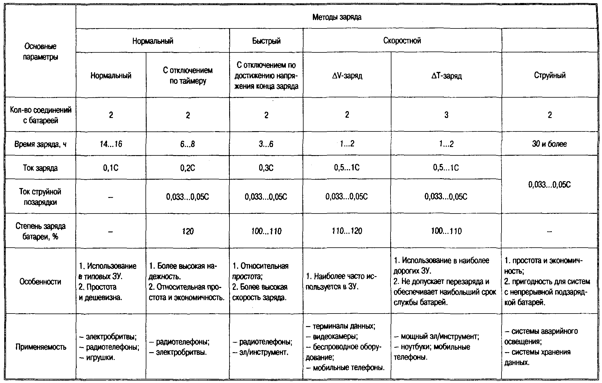 Критерий заряженности | Падение потребляемого тока до 2-3 мА/Ач + еще 1 час заряда таким током. | Падение потребляемого тока до 8-10 мА/Ач + еще 1 час заряда таким током |
