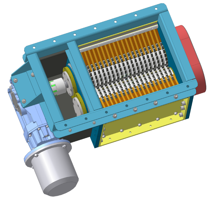Она может измениться в зависимости от диаметра ячеек фракционной решетки шредера, перерабатываемого материала, его формы, плотности и количества в бункере шредера. Обычно применяются сетки с диаметром отверстий от 15 до 100мм по выбору заказчика.