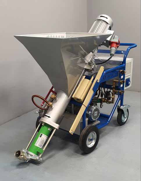 Применяется для инъекций микроцементами, полиуретанами, при ремонте трещин в бетонных конструкциях, распыления краски, а так же нанесения вязких и смесей: гидроизоляции, огнезащиты, штукатурки, шпатлевки, цементно – полимерных смесей. Легко наносит штукатурные смеси слоем 1,5 см за один проход.