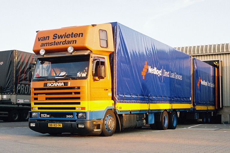 V. встретился со Scania 113, opgebouwd als zeilenwagen.