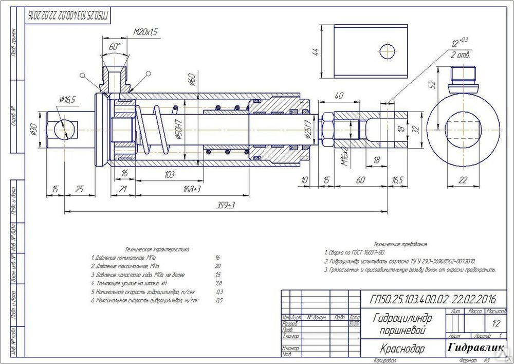 Как показали исследования оптимальной величиной рабочего давления жидкости в гидроцилиндрах является давление 25…30 МПа, при котором реализуется наибольший экономический эффект: наименьшая металлоемкость и умеренные затраты на изготовление гидроцилиндров.