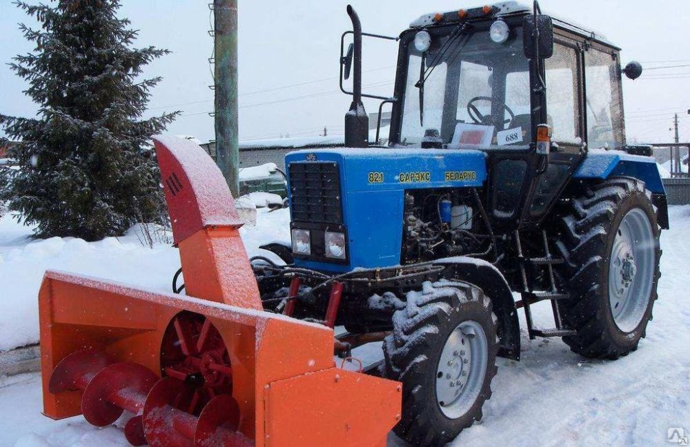 Снегоочиститель (шнекоротор) навешивается на трактор, оборудованный задним валом отбора мощности (ВОМ) и выводами для подсоединения гидросистемы.