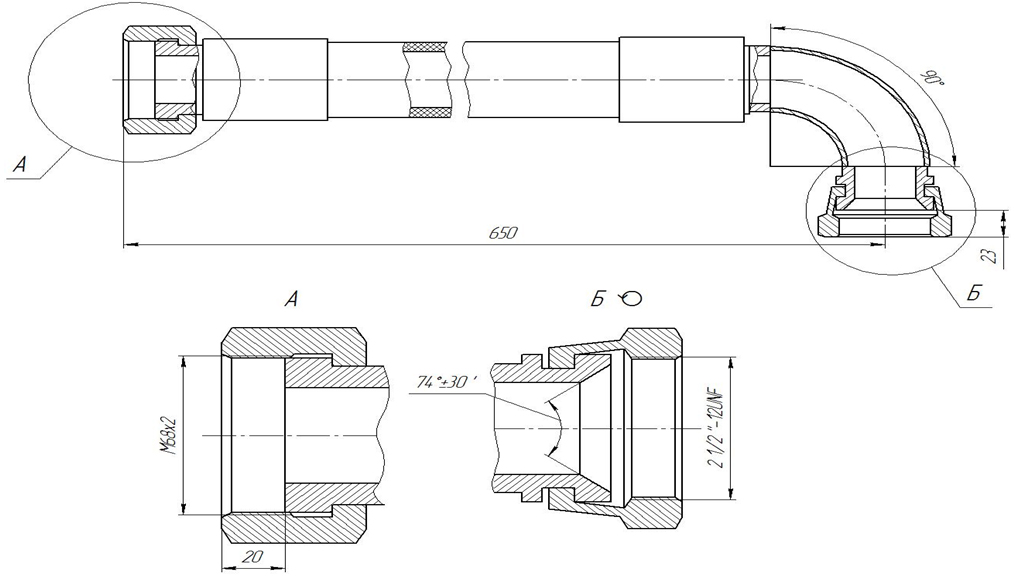 Определение длины шланга в сборе производится в зависимости от типа установленных фитингов: