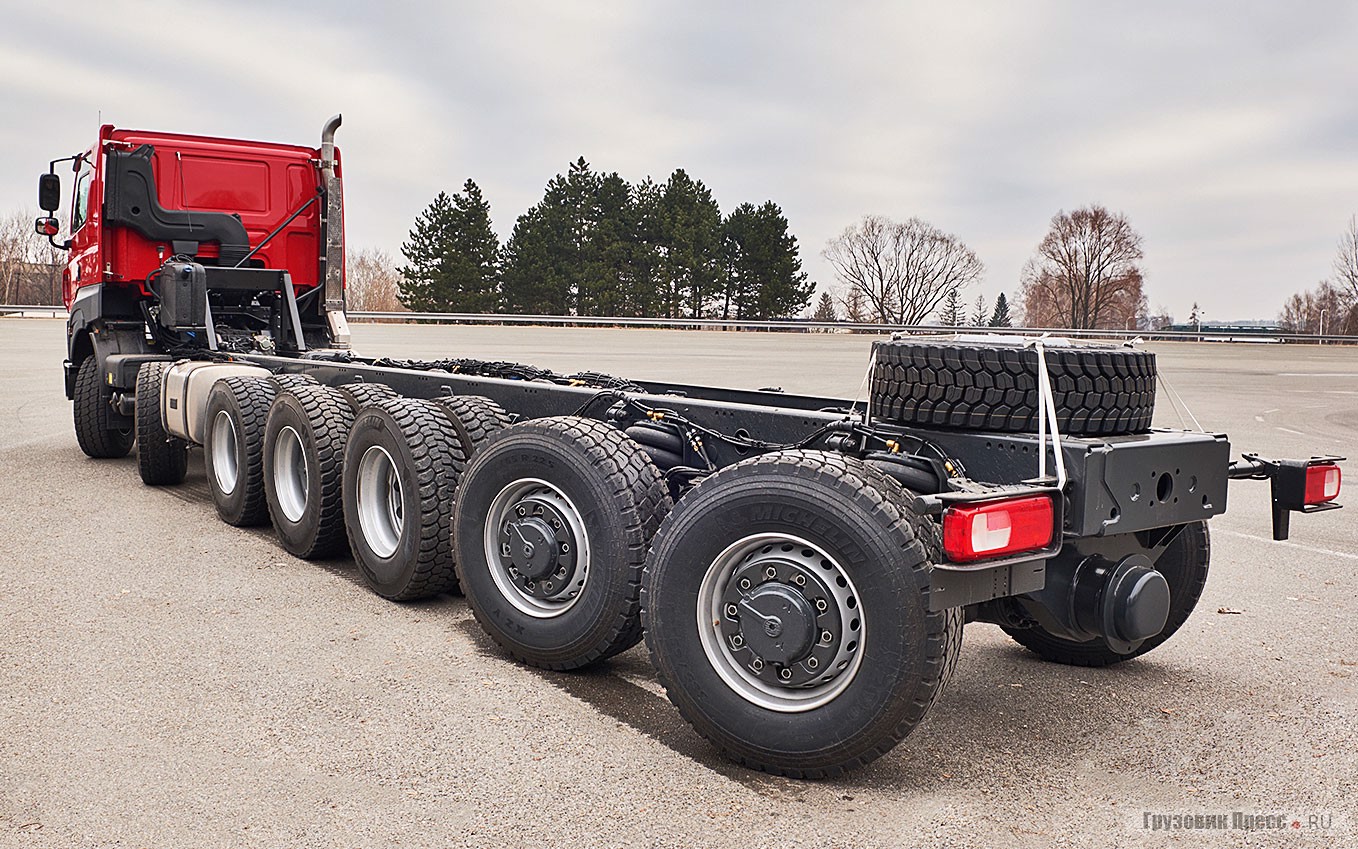 Максимально допустимая нагрузка на зад. мосты: 2 х 13000 кг