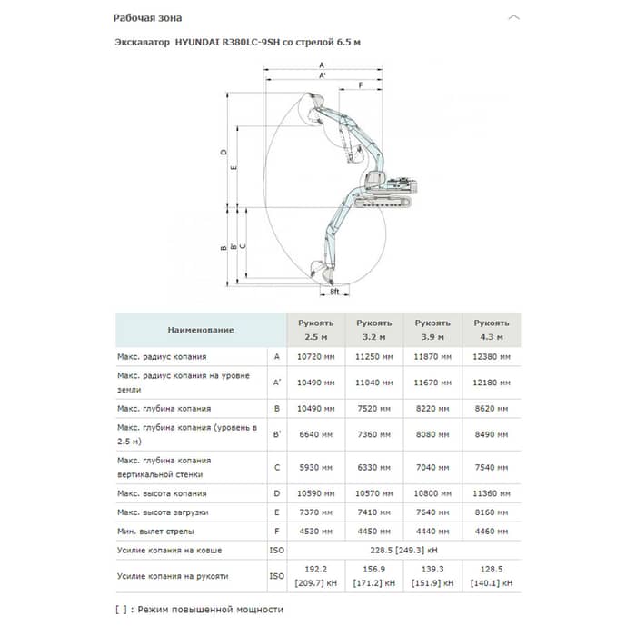 | A’ | Максимальная длина копания на уровне земли, мм | 9360 | 9680 | 10190 | 10700 |