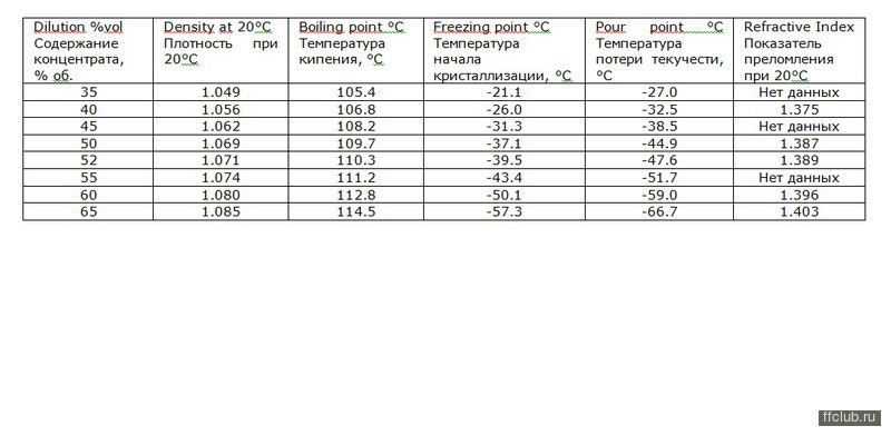 – летнее — застывает при температуре -5°С и полностью замерзает при -10°С;