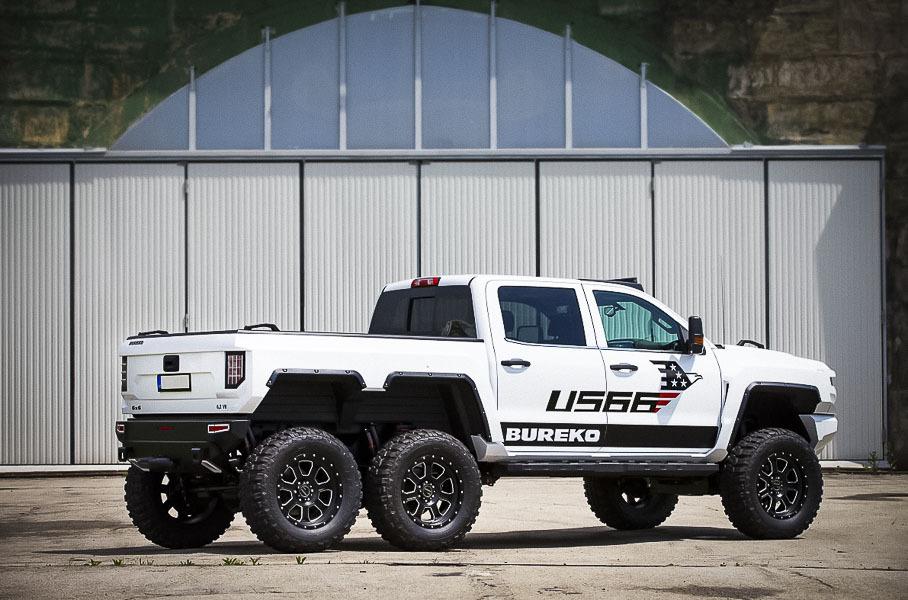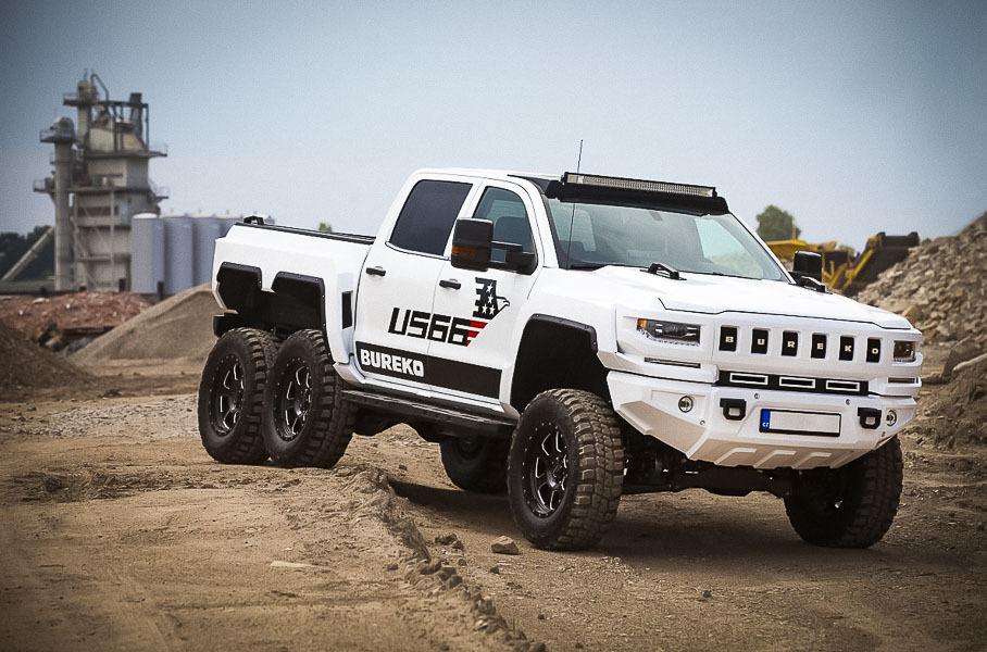В Австрии в городе Грац есть подразделение концерна Mercedes-Benz. В нем было создано два необычных Mercedes-Benz с тремя осями и шестью колесами. За основу необычных пикапов были взяты Mercedes-Benz G-Class, строго говоря, их AMG-версия. Кастомные авто переняли двигатель и автоматическую трансмиссию от оригинала, а также систему привода передней оси.