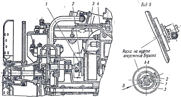 Регулирование опережения производится таким образом: