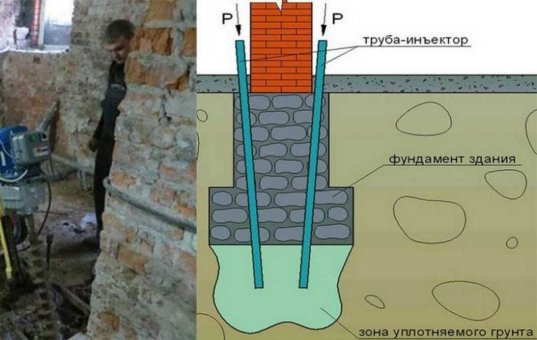 Оба метода по цементованию используются для основания, на котором строение уже возведено – даже при весьма ограниченно пространстве, где рядом стоят соседние здания и сооружения.