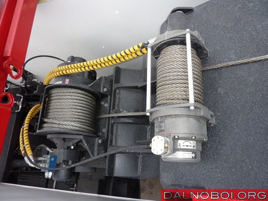 Лебедка монтируется на полу перед стойкой для головной боли в самой передней части откидной платформы и имеет небольшую конструкцию, обеспечивающую достаточно места для транспортных средств и оборудования. После включения ряд из двух рычагов может наматывать или отпускать лебедку, чтобы тянуть грузы на борт.