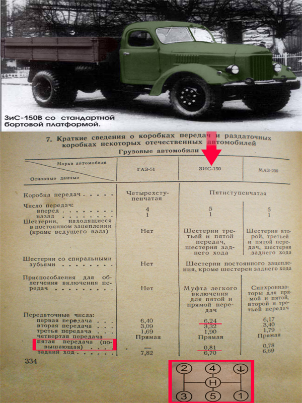 Механическая коробка передач автомобиля ЗИЛ-157 имеет шесть передач. Передаточные числа: