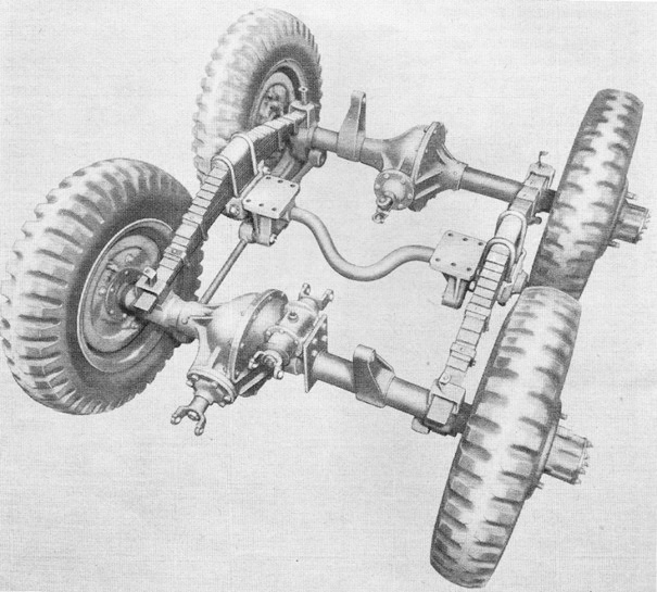 Карданная передача подверглась полной переделке, на среднем мосту была закреплена промежуточная опора для кардана заднего моста. Кожухи полуосей ведущих мостов были значительно усилены, были установлены ступицы колес и тормоза новой конструкции, колеса стали крепиться на восьми шпильках.