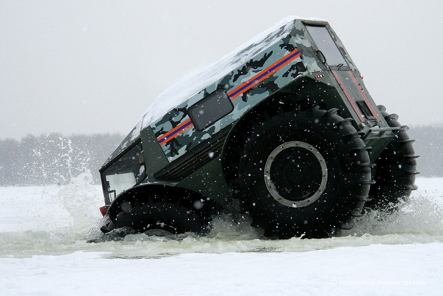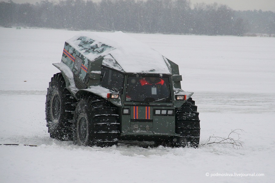 Эта специализированная машина является незаменимыми помощником для спасателей МЧС при проведении поисковых и спасательных мероприятий в болотистых и горных районах, местностях с глубоким снежным покровом, а также на грунте с низкой грузонесущей способностью.
