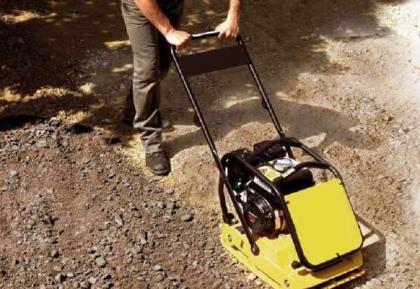 Затем пройдитесь по основанию три-четыре раза виброплитой, прежде чем добавлять материал сверху.