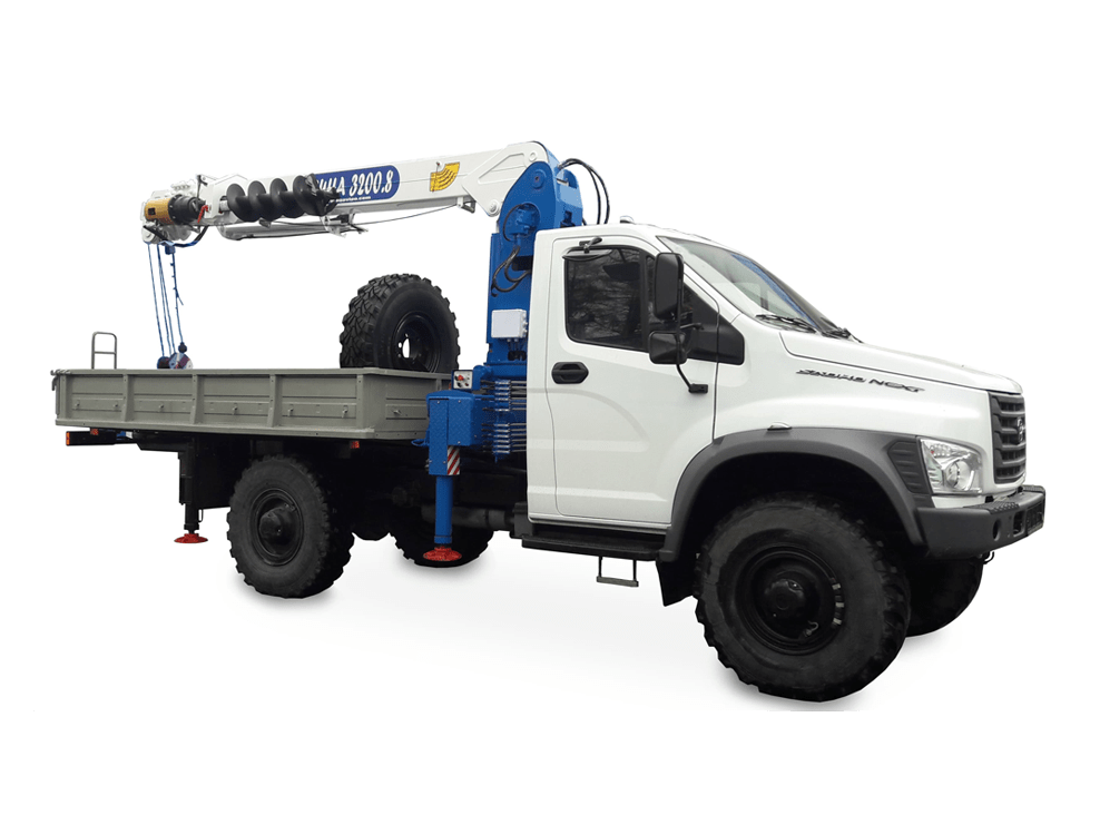 - крано-манипуляторных установок грузоподъёмностью от 3200 до 6500 килограмм со сменным рабочим оборудованием «рабочая платформа (люлька)» и «бур»;