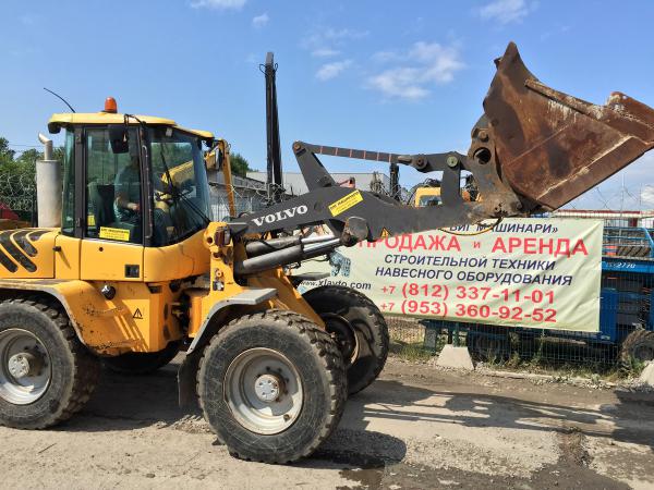 Мини-погрузчик фронтальный производства Volvo массой 8,3 т, мощность 75 кВт, объем ковша 2,5 м3.