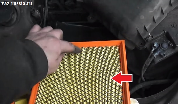 Когда крышка снята, нужно вынуть фильтрующий элемент.