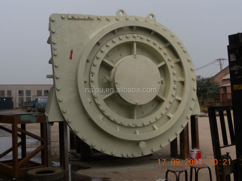 Однако на этом сходство заканчивается. Конструктивные решения при проектировании шламовых насосов весьма специфичны и определяются большим количеством твердых частиц в обрабатываемой среде и их абразивным воздействием на детали насоса. Например, самый большой шламовый насос Warman может перекачивать частицы размером до 450 мм. Успешное перемещение крупных абразивных частиц, таких как камни и галька, поступающих в насос с грунтом, происходит за счет увеличения внутреннего сечения. Однако увеличение поперечного сечения снижает скорость и делает насос тихоходным, что требует больших размеров и веса. Для беспрепятственного перемещения крупных частиц количество лопастей рабочего колеса должно быть от двух до четырех, а ширина рабочего колеса должна быть больше, чем у стандартных центробежных агрегатов.