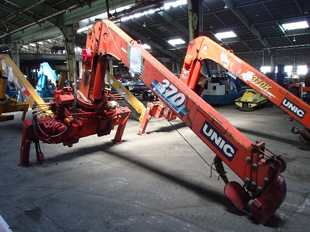 - Юник UR-V373, оснащенный трехсекционной стрелой с горизонтальным вылетом от оси вращения, составляющим 7,51 м;