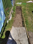 Я решил “какого черта”.Мне пришлось копать вручную, используя лопату и кирку, потому что строитель засыпал нашу собственность кирпичом и асфальтом. На это ушло довольно много времени. Поскольку уровень земли на этой стороне дома сильно различается, мне не удалось достичь глубины ровно 2 фута. Местами он варьировался от 18 до 30 дюймов, но спуск был под гору. Траншея составляет около 80 футов в длину. Иногда я думал о том, чтобы заполнить все это, потому что просто не верил, что это сработает.