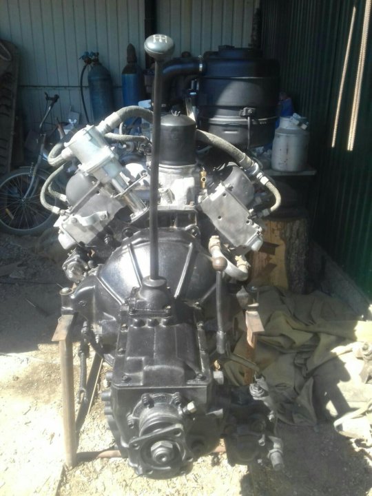 Поршневая группа внутри двигателя, ход поршня — одинаковый. Головка двигателя снаружи немного отличается, коллектор установлен цельный и из чугуна.