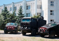 И уж совсем нелепым выглядит количество отверстий в бронекорпусе: здоровенные проемы под двери и окна, люк на крыше… Скорее всего, у этого «монстра» нет никаких шансов противостоять более-менее мощному фугасу, так что для непосредственной работы в зоне боевых действий автомобиль явно не пригоден. Ни фары, ни зеркала, ни даже оптика видеокамер ровным счетом никак не защищены от огня даже ручного стрелкового оружия.