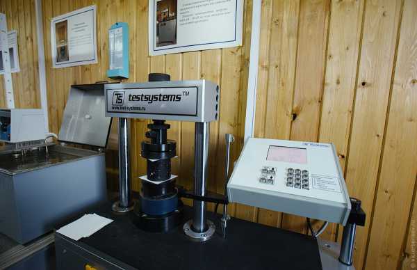 23. Заводская лаборатория в которой проводят контроль качества сырья и испытывают готовую продукцию. На фото машина ДТС-06-05, которая предназначена для испытания образцов асфальтобетонных материалов на сжатие и определения предела прочности при расколе.