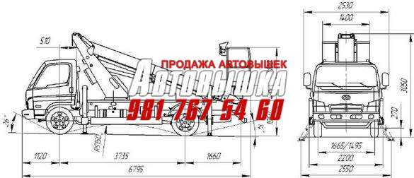 Автовышка АГП-18Т на шасси автомобиля Hyundai HD-65 предназначена для проведения строительно-монтажных работ на высоте до 18,3 метров. Автовышка (автогидроподъемник) оборудована люлькой (корзиной) с электроизоляцией, позволяющей оператору проводить работы на ЛЭП (линиях электропередач) и связи, под напряжением до 1000 В без отключения электроэнергии.