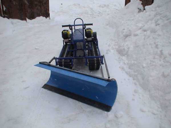 При изготовлении скрепера для снега своими руками скребок ставится на четырехколесную тележку, например от коляски. Вместо колес можно использовать полозья. Сам скребок можно оборудовать более высокими бортами. В остальном конструкция аналогична обычной модели.