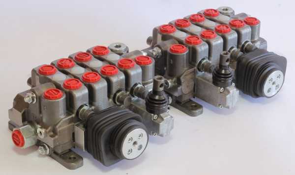 - Секционные. Этот тип гидрораспределителей используется в механизмах, где задействованы несколько видов рабочих органов. Они имеют более широкие возможности управления техникой, кроме того, при необходимости можно заменить изношенную секцию и установить в механизм новую.