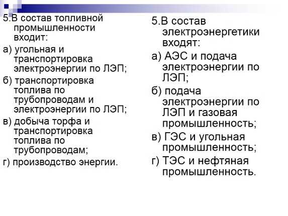 б) транспортировка топлива по трубопроводам и электроэнергии по ЛЭП;