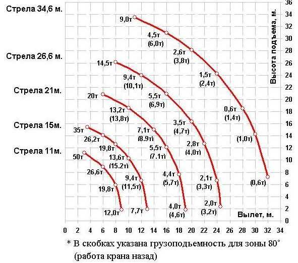 - длина стрелы 32,75 м, 35 м, 40 м, 42 м, 50 и 70 м;
