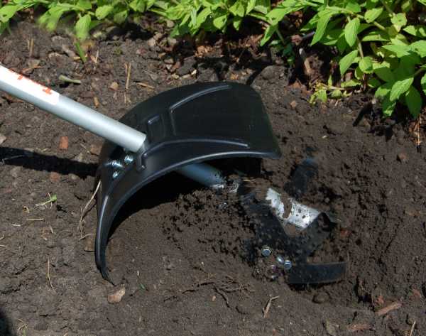 Основным плюсом этого инструмента является то, что передвигаясь быстро, винт будет разбивать землю на крупные куски, а при замедленном движении обработка будет заключаться в смягчении почвы.