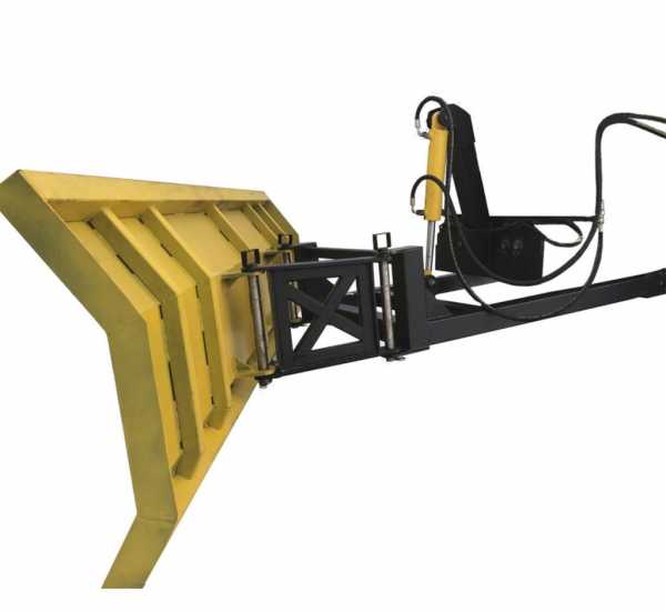 Отвал находится под полным гидравлическим управлением тракторной машины, оператор не выходя из кабины может манипулировать лопатой. В комплекте также присутствует особая наклонная проставка, позволяющая менять угол поворота снегоуборочной насадки. Если не использовать эту проставку, то отвал будет работать как прямой, а не гидроповоротный.